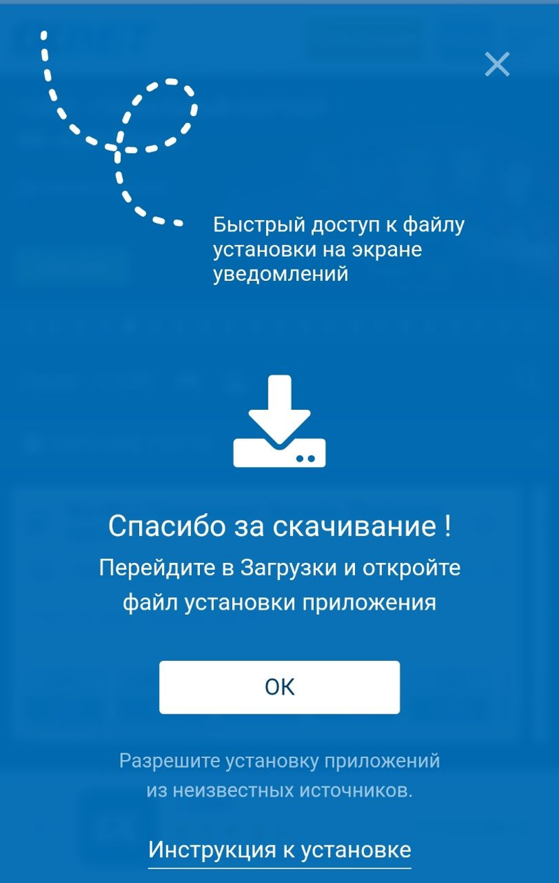 На этом шаге выберите “Скачать на Андроид” и установить на устройство apk файл.