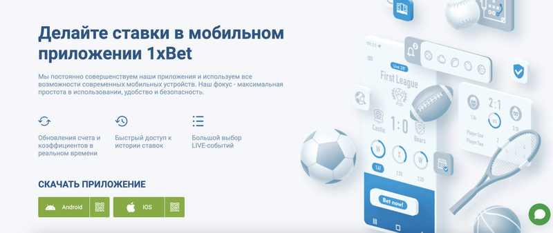 Мобильное приложение 1xbet – это удобный способ получить быстрый доступ к ставкам на своем мобильном телефоне. Скачать 1xbet на Андроид можно двумя способами: на официальном сайте букмекерской или на этом сайте, нажав кнопку “Установить APK”. Приложение 1хБет предоставляет полноценный доступ к возможностям букмекерской конторы , поэтому отлично заменяет сайт для ставок.